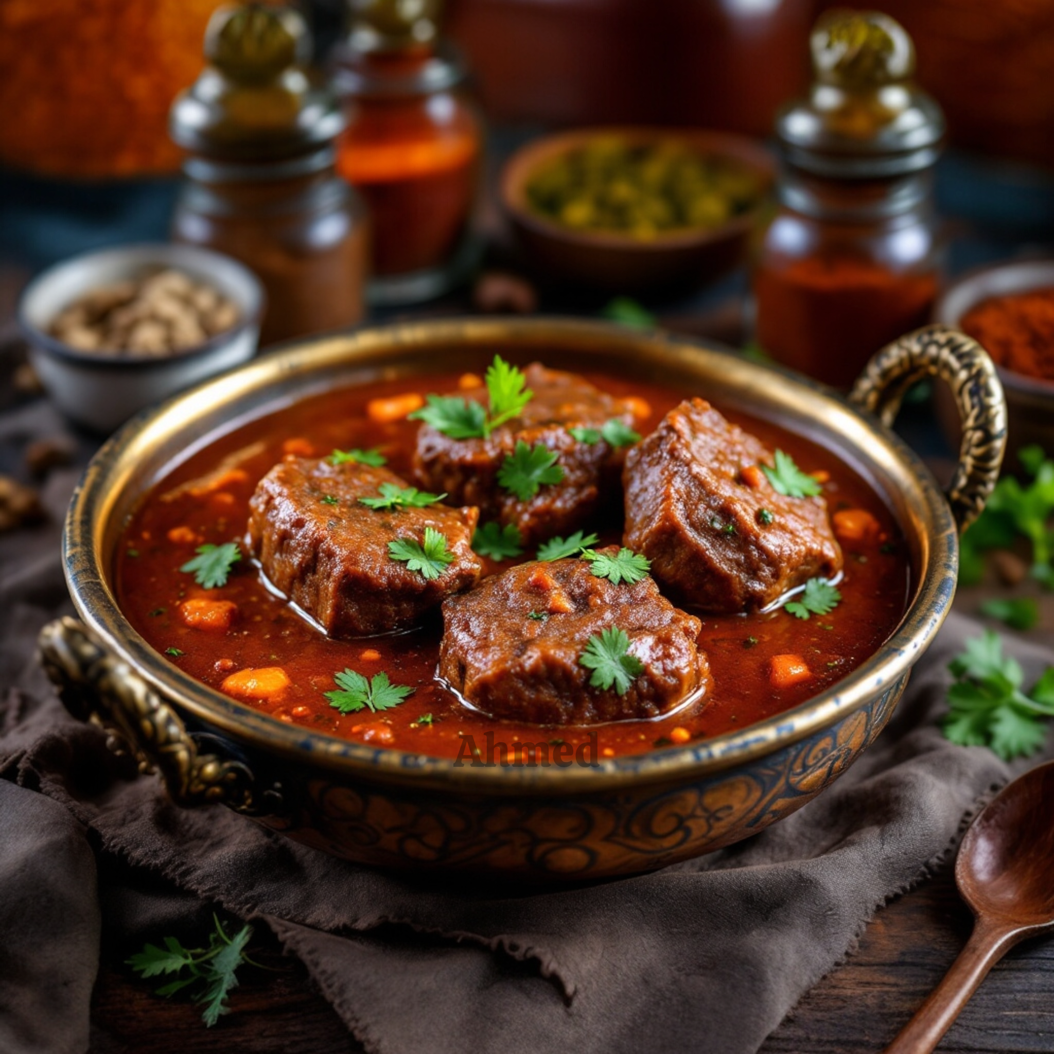Tender beef cooked in a rich, spiced gravy for a classic desi flavor.