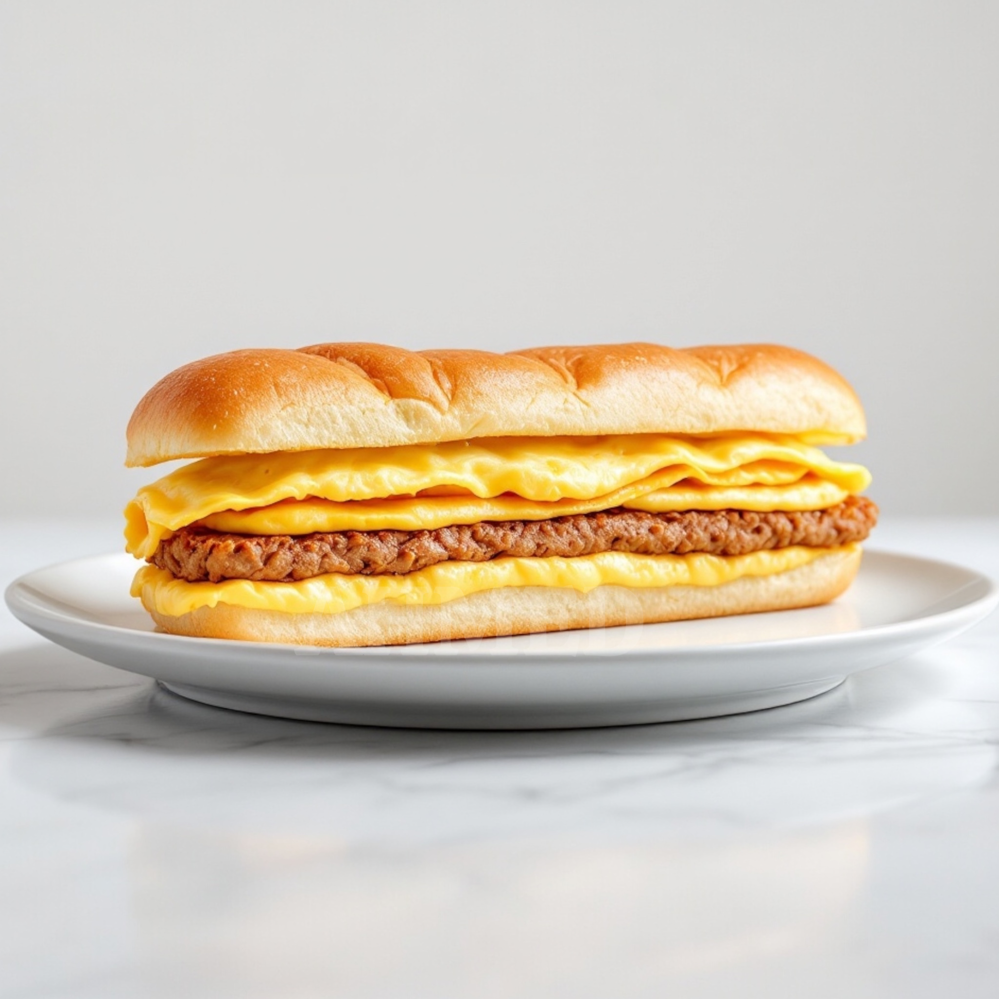 A flavorful egg and shami patty burger stacked with fresh veggies and layered with creamy sauces.